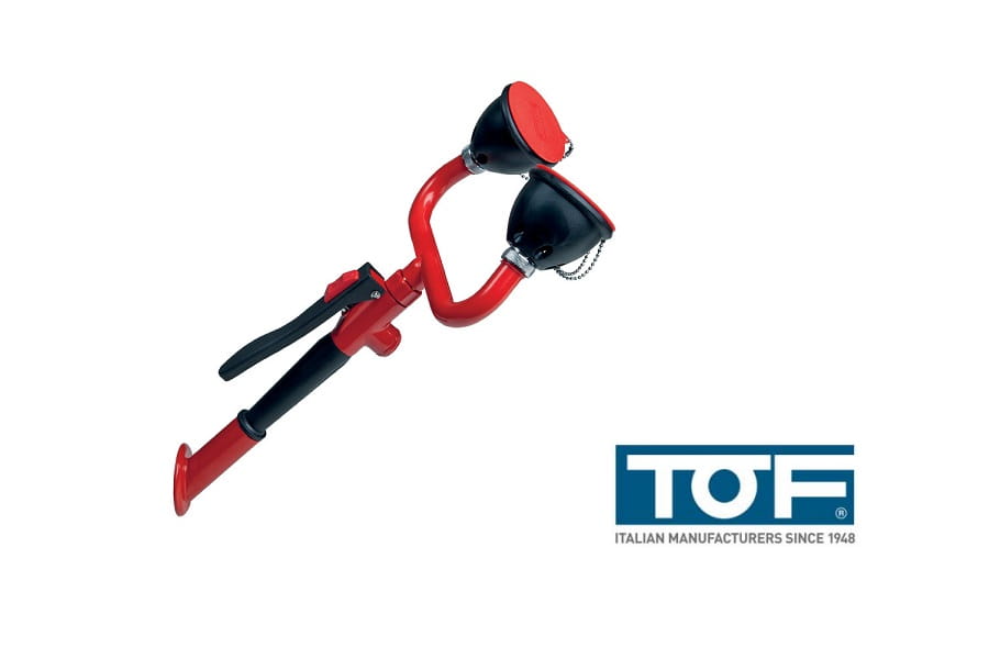 Oczomyjka ratunkowa TOF 1100/35 jest urządzeniem stacjonarnym mocowanym do ściany. Dwie głowice zwiększają skuteczność płukania oczu, pozwalając na jednoczesne płukanie obu oczu. Głowice są umieszczone na 1,5 metrowym wyciąganym wężu. Urządzenie uruchamia się poprzez naciśnięcie rączki, co odblokowuje strumień wody. Rączka wyposażona w specjalny zaczep blokujący ją w pozycji włączonej.
