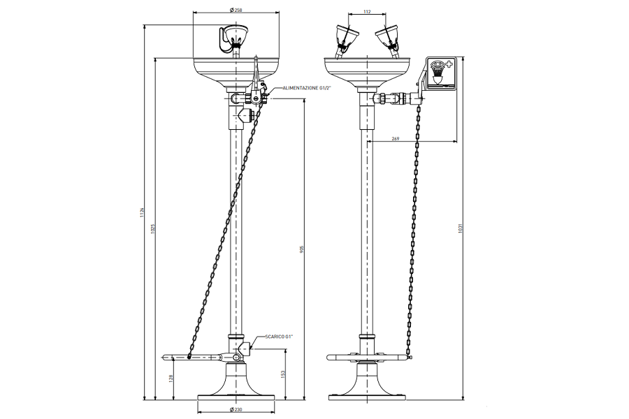 Oczomyjka stojąca z misą ze stali nierdzewnej i pedałem TOF 1100/330X