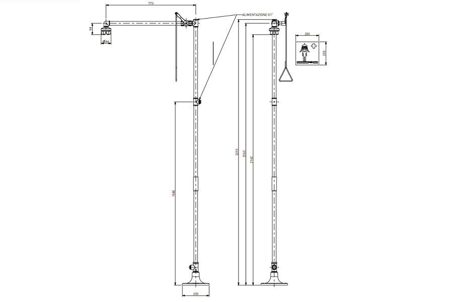 - prysznic ratunkowy stacjonarny, stojący, do montażu do podłogi,