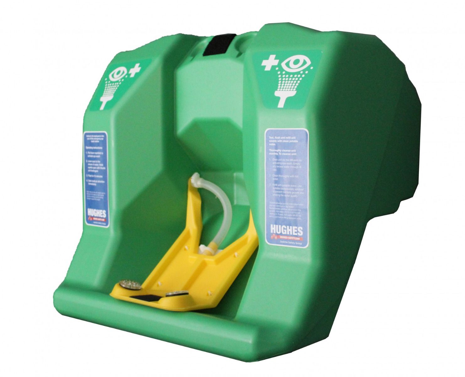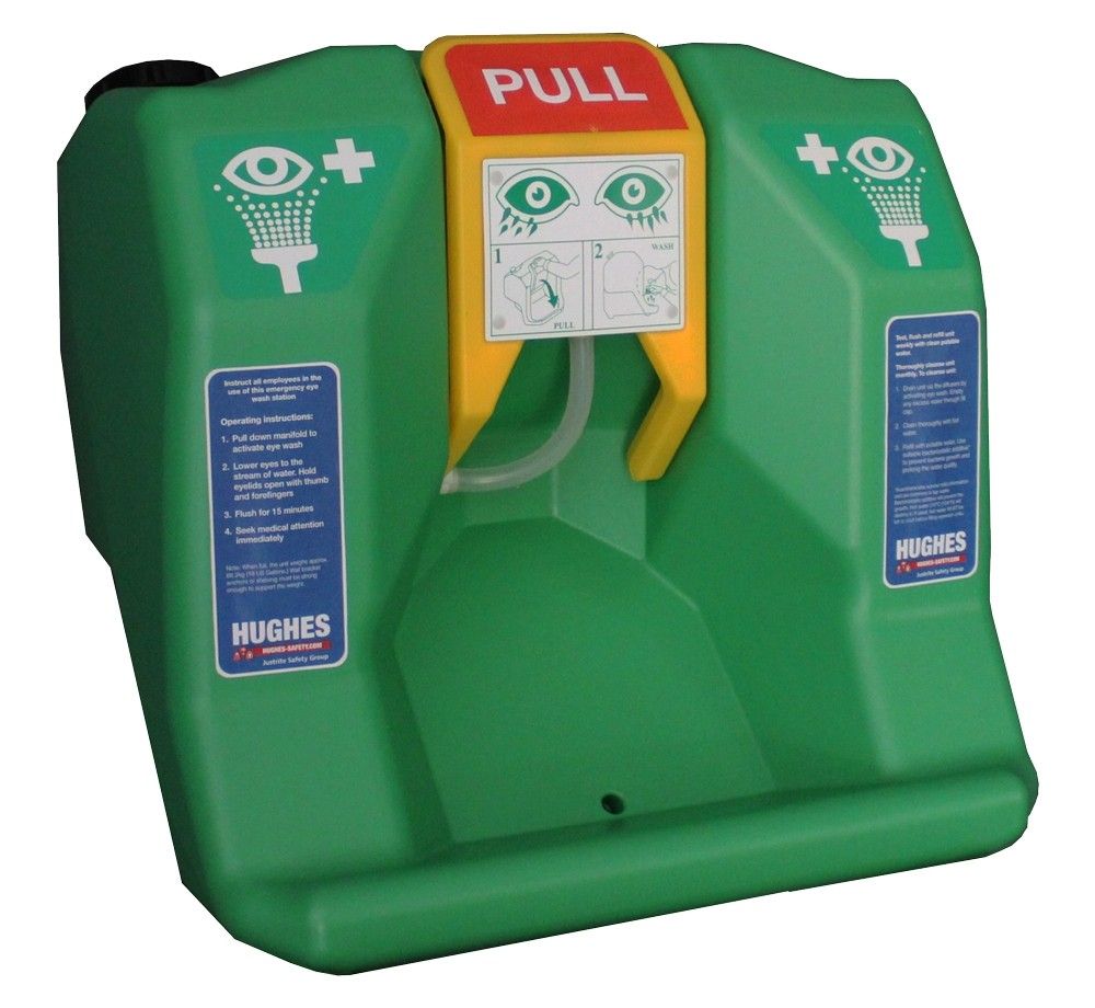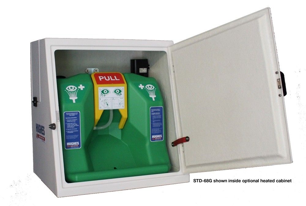 Urządzenie do przemywania oczu i twarzy STD-68G przeznaczone jest do miejsc, gdzie nie ma stałej instalacji do przemywania oczu/twarzy. Przenośny zbiornik firmy Hughes Safety Showers można zamontować na stole lub na ścianie.
